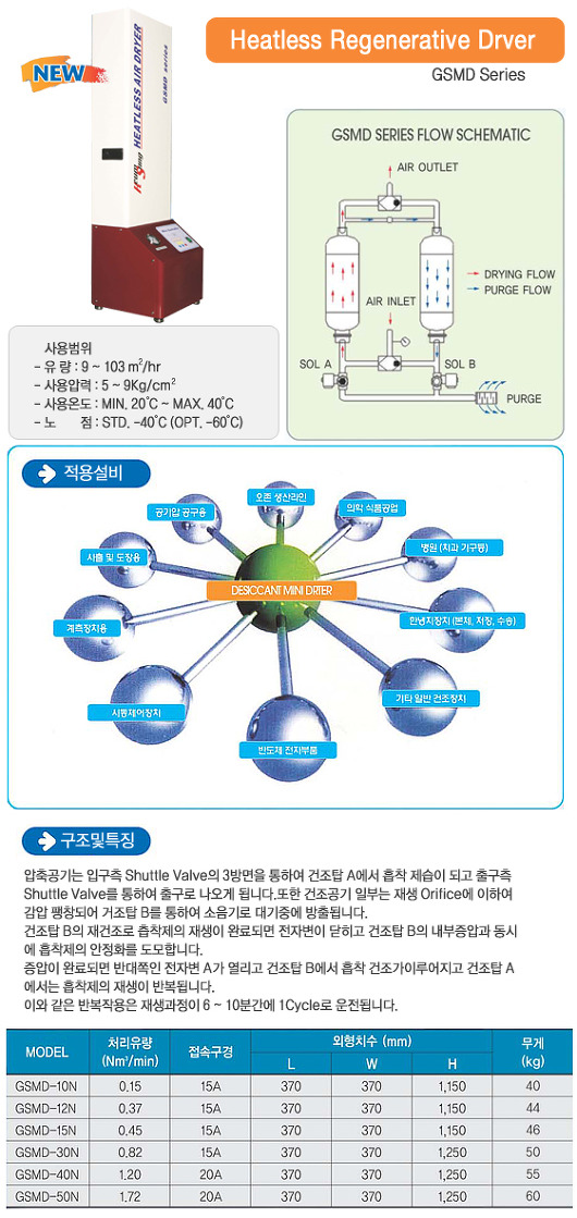 냉동식 수냉식, 흡착식 드라이어등 전 품목 취급.